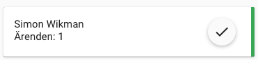 Ett grönt ärendekort visar att alla ärenden är klara. När du som beställare noterat att ärendet är klart arkiverar du det genom att klicka på V ikonen. När du arkiverat det försvinner det även från utförarens ärendelista.